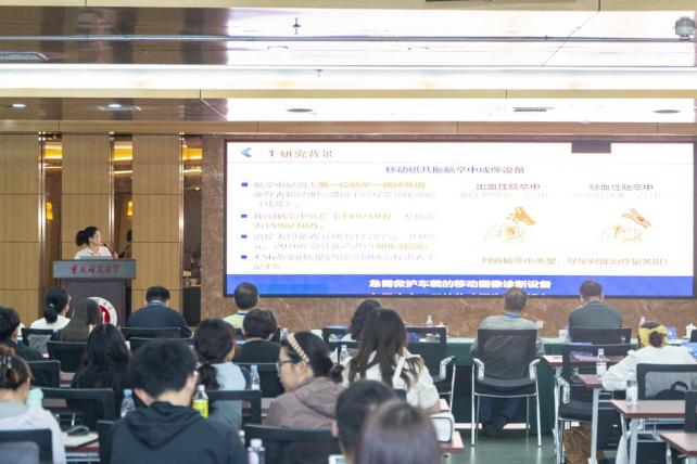 郭盼副教授做题为《超低场移动式磁共振成像系统研究》的报告,介绍了超低场移动磁共振成像技术在临床早期快速诊断脑卒中类型方面的应用情况,对该系统研发所面临的系列科学问题、工程问题和临床应用问题进行了探讨。