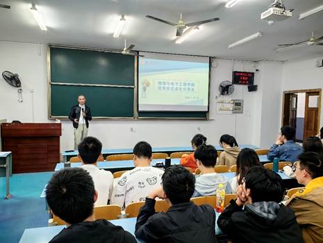 李麒麟校友围绕专业学习和就业选择分享经验。他给同学们提出三点发展建议:第一,着力培养动手实践能力,尤其要重视基础实验;第二,树立坚定的专业信心,扎实掌握专业知识与技能;第三,尽早确定职业发展方向,主动了解专业前景。