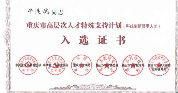 斗牛游戏 牛连斌老师当选为2018年重庆市科技创新领军人才;