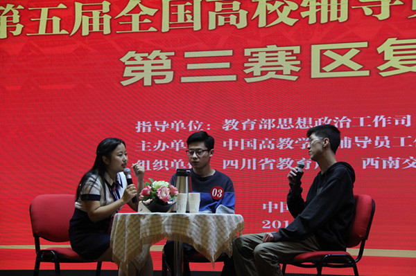 据悉,此次复赛由教育部思想政治工作司指导,中国高教学会辅导员工作研究会主办,四川省教育厅、西南交通大学承办。来自重庆、四川、甘肃、青海、宁夏、陕西、新疆等七个省市及新疆生产建设兵团的重庆大学、西南大学、陕西师大、新疆农业大学等共79名参赛选手参赛。比赛共分为两个阶段,五个环节。选手通过5个环节充分展示了辅导员能力和专业素养。第一阶段包括主题班会(视频)、基础知识测评及网文写作、案例分析,陈禹辛老师凭借优异表现冲入前二十强,进军决赛;第二阶段包括主题(即兴)演讲、谈心谈话,最终获得第五届全国高校辅导员职业能力大赛复赛(第三赛区)二等奖。