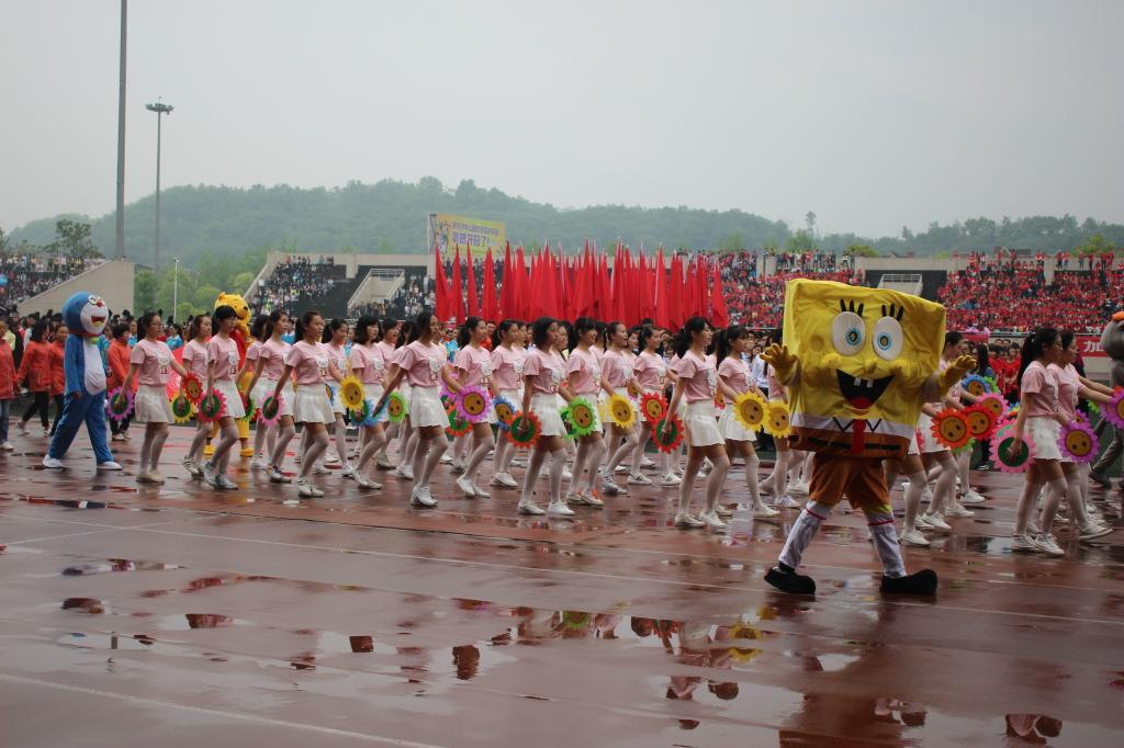 战斗力强悍,不畏艰难的运动精神;音乐学院代表队身着英伦服饰风配上乐器走出自己的仪仗队;文学院身穿汉服表演自己的文化,中国古典文化;化学学院也不例外,结合自己的专业知识给同学们一个不一样的理科生。研究生学院用朝气的向日葵向大家宣誓他们依旧青春依旧运动。更有海外留学生组成的队伍为学校运动会加油喝彩,带来来自异国的祝贺和友谊。最让人感动的是他们——那些默默为学生们付出了一生的高退休教职工们,随着岁月的流逝他们白了双鬓,有了皱纹,但他们用行动告诉同学们,他们依旧年轻,依然能舞蹈,能运动,同时他们积极乐观运动的生活态度也同样鼓舞着同学们。
