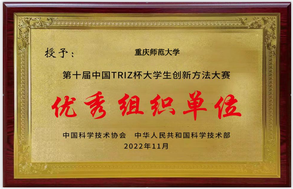 学校被中国科技部授予“第十届中国triz大学生创新方法大赛”优秀组织单位