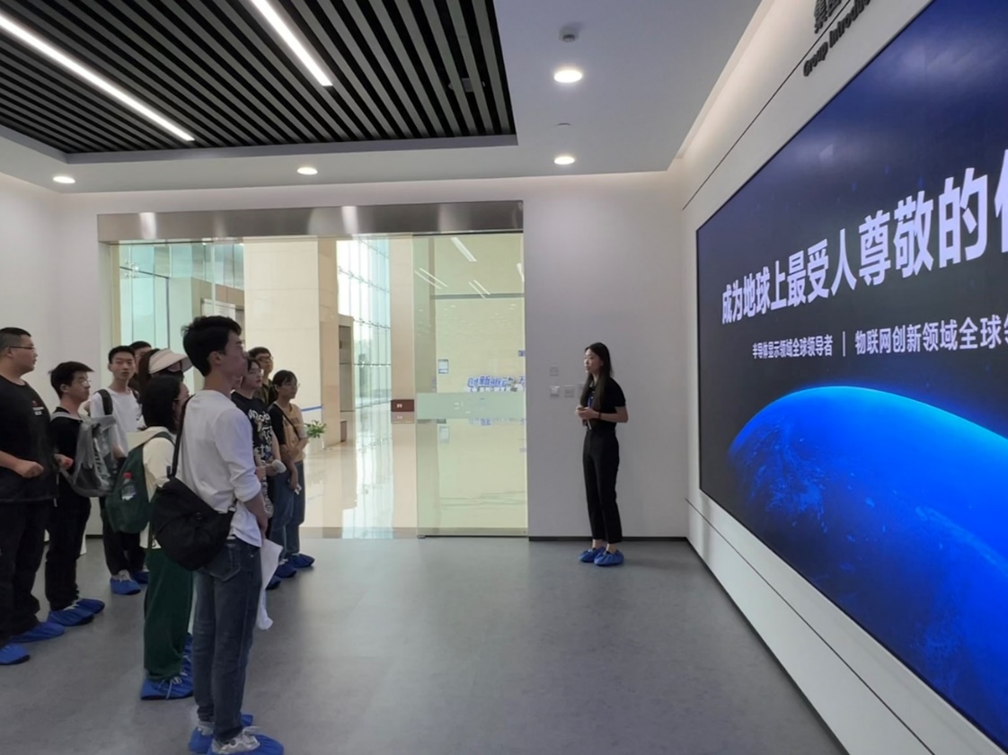 物电师生一行首先参观了企业展示大厅、应用展示区、路演区,对京东方结束我国“缺芯少屏”中的“少屏”困境有了初步了解。同学们对公司研发的手机柔性显示屏、车载显示屏、医疗显示屏以及价值不菲的超高清电视显示屏表现出浓厚兴趣,对我国电子显示科技发展情况有了更直观的认识。
