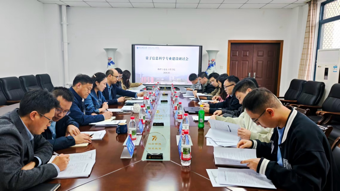 于3月29日在集贤楼524会议室召开量子信息科学专业建设研讨会。会议邀请重庆大学、西南大学相关领域专家学者,对专业培养方案及建设规划进行研讨指导。会议由学院院长张丁可教授主持,学院领导班子及教师代表参会。