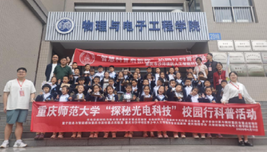 联合重庆市级人工智能科普基地、重庆市相关重点实验室及重庆物理学会,共同开展“智慧科普启新程”信息科技系列科普活动。重庆市树人小学45名一年级学生走进学院实验楼,沉浸式感受光电信息科技魅力,开启趣味科学探索之旅。