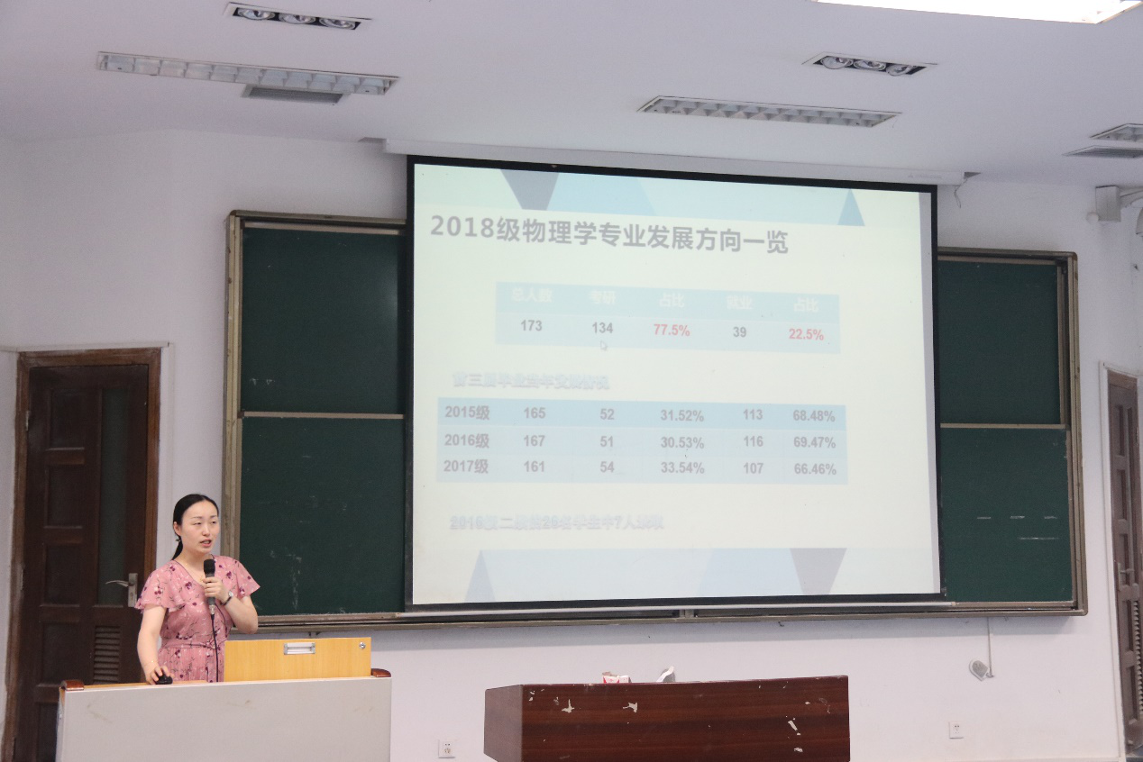 2022届师范生就业动员会暨考研推进会在15105顺利举行。物理系主任余鹏教授、党委书记曾艳、2017级学生代表殷遥、简轻松作为嘉宾参与了本次推进会。会议由2018级辅导员李青松主持,2018级物理学专业全体学生参会。