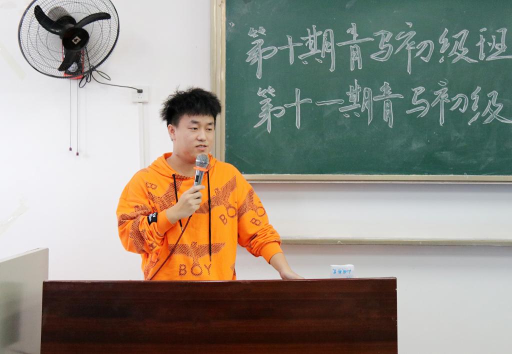 活动伊始,青马班培训部副部长钱泓毅向同学们详细介绍了青马工程。他谈到,青马工程的开展旨在提高大学生骨干、团干部、青年知识分子等青年群体的思想政治素质、政策理论水平、创新能力、实践能力和组织协调能力,使他们进一步坚定跟党走中国特色社会主义道路的信念,成长为中国特色社会主义事业的合格建设者和可靠接班人。