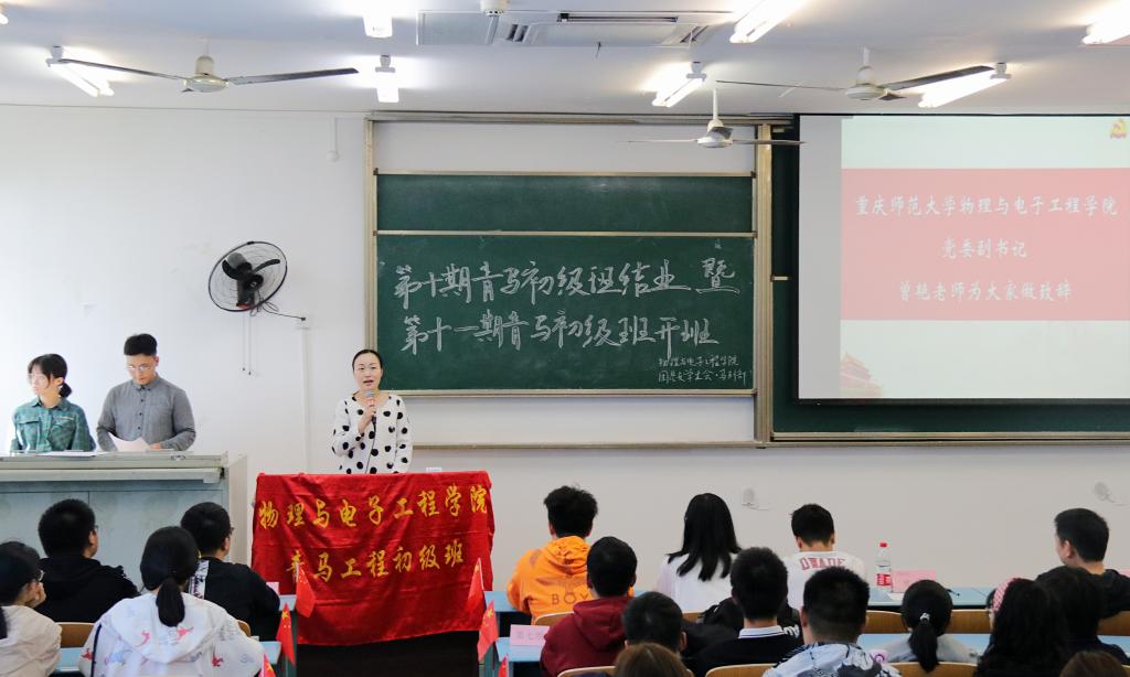 第十期青马初级班结业暨第十一期青马初级班开班仪式在大学城校区弘德楼(15302)举行,学院党委副书记曾艳、团总支书记李青松及各年级辅导员出席活动。
