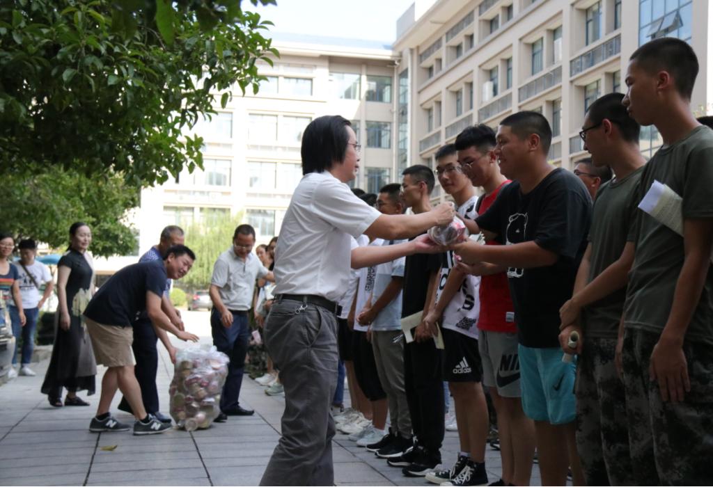 最后院领导给新生分发了慰问品——月饼、水果及饮料,并给予在训学员们关怀与慰问。