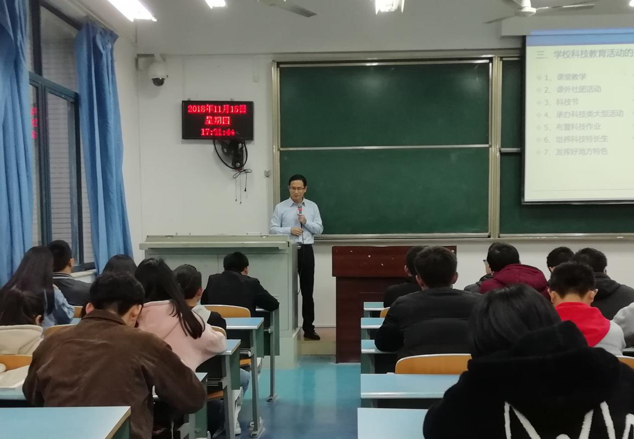 于2018年11月15日下午5:00在弘德楼15401教室组织了一场内容为“双创视野下的中小学科技活动实施策略与师资培养探究”的学术讲座。此次讲座邀请到了巴蜀中学副校长兼中小学科技教育研究员刘雅林博士作为主讲人。