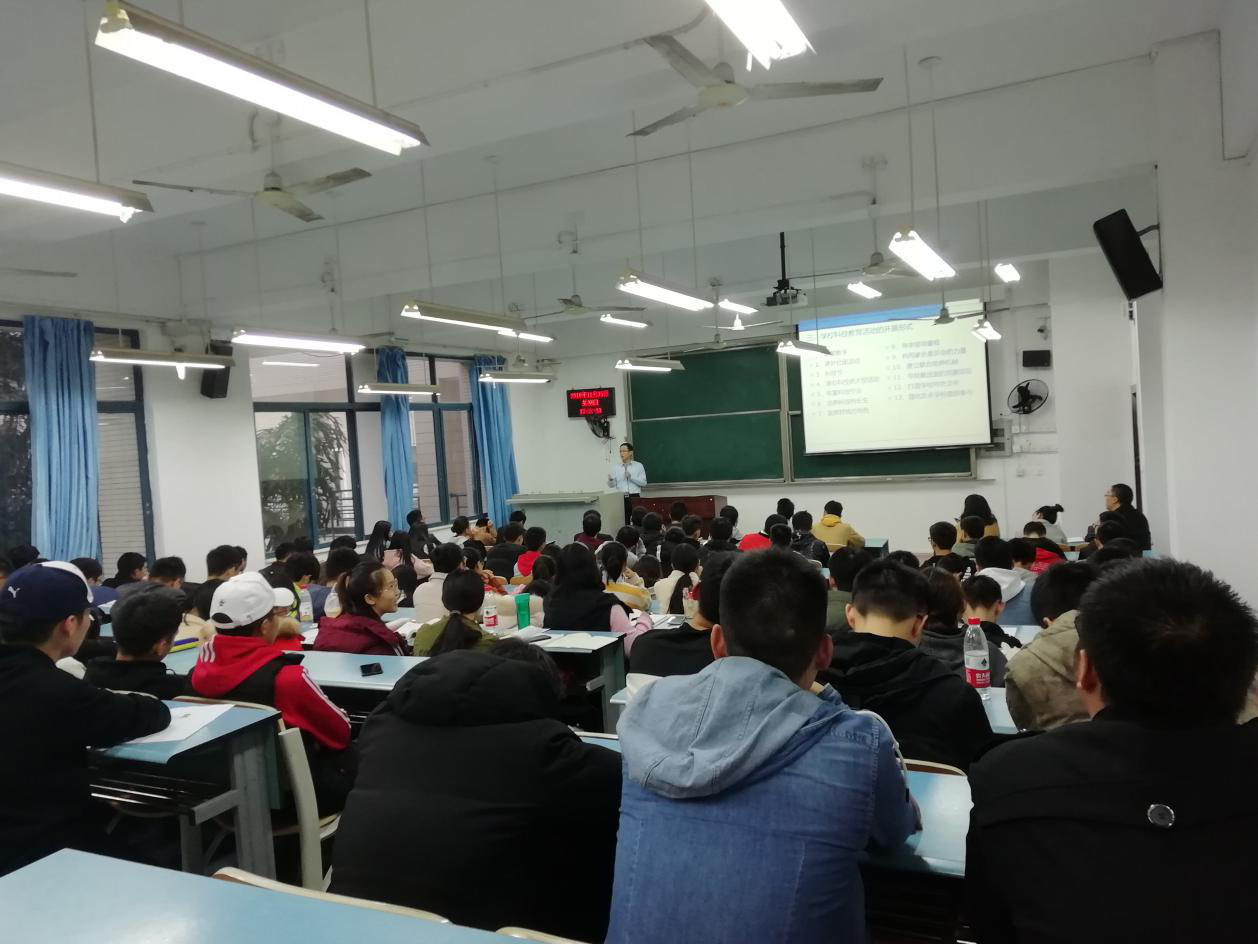 其次是科技教育的任务为普及科学知识、倡导科学方法、传播科学思想、弘扬科学精神。最后一点则是学校科技教育活动的任务——传授科技知识、训练技术技能、掌握科技方法、提高创造能力。刘校长借自身经历、所见所闻,深刻剖析了当今的社会状况,帮助同学们更好的了解了从事科技教育活动这一工作的具体内容。在此基础上,刘校长从学校、家庭、制度等几个方面具体的向同学们展示了学校科技教育活动的开展的13种形式。讲座最后,刘校长表达了对同学们能够从事科技教育者的殷切希望。