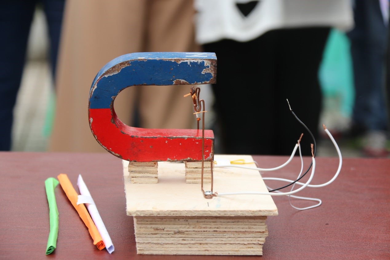 参赛小队根据抽签决定展示顺序,然后依次向评委老师展示实验过程,叙述实验原理。一部分小组选择了浮沉子实验,一沉一浮间,让人对阿基米德原理有了别样的认识;有些小组大胆创新,自己设计实验装置,通过观察实验现象验证原理;有些小组则运用控制变量法验证原理;还有的小组结合自身专业知识,设计电路,观察电磁感应现象或验证非门、与门……美观又实用的教具不仅是教师的得力助手,也能成为学生的好伙伴,优秀的教具往往能在教学活动中达到事半功倍的效果。