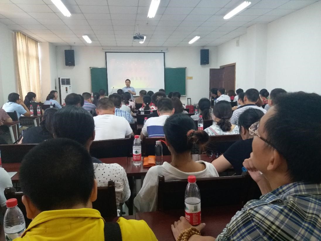 家长见面会首先由学院专题宣传片拉开序幕。分专业视频给家长们展示学院的发展历史、取得的重要成绩、各专业的基本情况等,家长们一边认真观看,一边点头互相交谈。其后,学院党委副书记冉久飞讲话,他首先对新生家长们的到来致以最热烈的欢迎,然后做了题为“如何适应大学生活”的主题讲座。他首先介绍了学院的基本概况,重点就师资力量、教学设备、学科建设、学生工作等方面做了介绍。接着,冉久飞老师向新生家长隆重介绍了学院独有的学生工作理念:引领学生、关心学生、服务学生,围绕这一目标,斗牛扑克