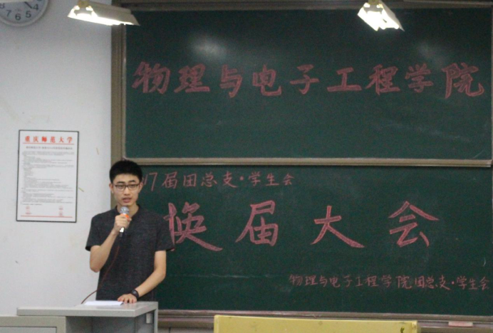 会上,2017届团总支学生会代表郑杰发表讲话。他肯定了2016至2017年度间的学生工作,同时也对新一届的学生会给予了期待。他强调在学生会工作中,态度比努力更加重要,不忘初心,不畏将来,不断地突破自己,不负众望。在为优秀的学生干部进行隆重的颁奖之后,新一届团总支学生会代表任幸上台发言。她指出,学生会中让人成长于进步,这里不仅有泪水与汗水,还有欢笑和幸福。与此同时,她对新一届的团总支学生会充满了希望,传承物电精神,将学生会工作做好。并且,任幸也表示将以身作则、恪尽职守、不断创新、加强学习建设、以饱满的热情对待困难与挫折。