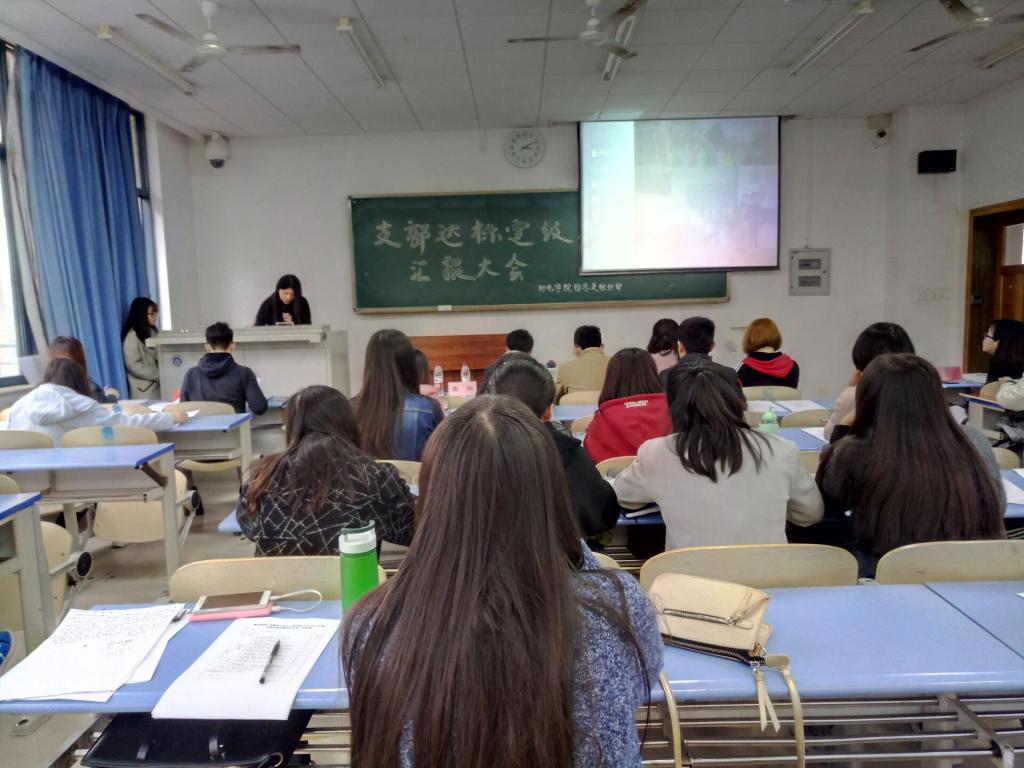 大会上,各个班级团支书依次上台,向在场所有人展示精心制作的幻灯片并通过精炼的语言描述了所属支部的风采。团支书们大多从学风、纪律、文体等方面介绍了支部的建设情况,将支部建设框架清晰明了的展现出来。由于专业性质不同,建设工作的侧重点也有所不同,各支部团支书结合支部自身情况,赋予了各支部独有的个性,斗牛扑克