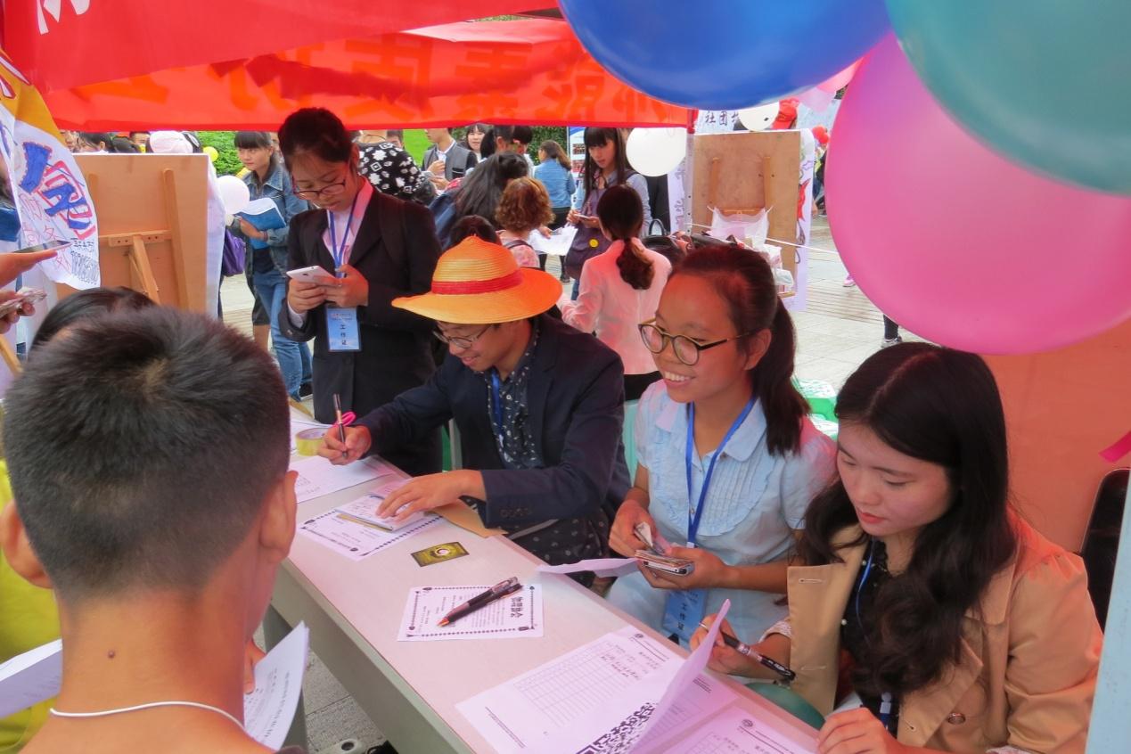 你会听见叫声逐渐的嘶哑,你会看见衣服逐渐的湿透,你会闻到书墨花香的味道,你会感受到百团招新的力量。这是一场多姿多彩的青春,是一个个展现自我的平台,是一张张稚嫩可爱的面孔,是一句句对社团的好奇。本次百团招新,一方面发掘培养同学们的各类兴趣,提供一个展现自我的平台,另一方面是青春激情的体现,那似火骄阳般的热情是90后,是每一个人心中闪闪发光的青春梦。