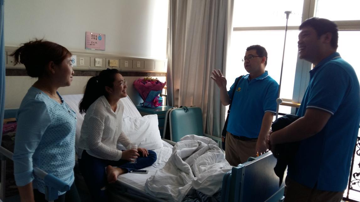 在小小的病房里,学院副书记冉久飞鼓励滨滨要有信心战胜疾病,好的心态和生活作息习惯对于战胜病魔非常重要。辅导员王崇明关切地询问了滨滨的病情和治疗情况,希望她安心养病,不要担心自己学习上的事情,力争早日战胜病魔、早日康复。最后,学院副书记将爱心捐款递交给了滨滨的母亲。面对这一切,滨滨及其家人深表感谢,表示一定积极配合治疗,早日回到学校,完成学业,为社会的建设与发展贡献自己的力量。