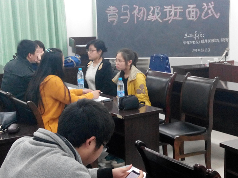办公楼5楼举行了人员选拔面试。学生副书记徐双冰、马列部副部长沈萍等学生干部担任主考官。其面试内容主要为:无领导小组讨论。面试者分为两批,每批给出不同的考试题目。面试者针对不同的题目进行无领导小组讨论,提出自己的合理方案,然后进行为时两分钟的陈述。