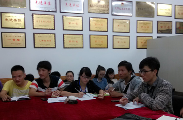 又组织了一次富有意义的“传递正能量”的活动。10月13日晚,学院团总支·学生会的主要成员们聚集在501办公室简单地讨论了部门招新之后的主要工作和学生特色活动。每个部门介绍未来一学期的工作安排,大家认真协商改进各种方案,力争将团总支·学生活动有序地开展。