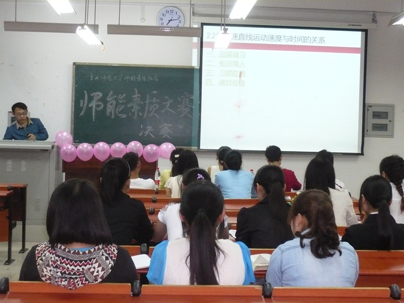 2013年5月10日星期五晚上,重庆师范大学师能素质协会在弘德楼12106教室举办了“师能素质大赛”讲课决赛。特邀评委嘉宾和初赛的选手出席了本次大赛。