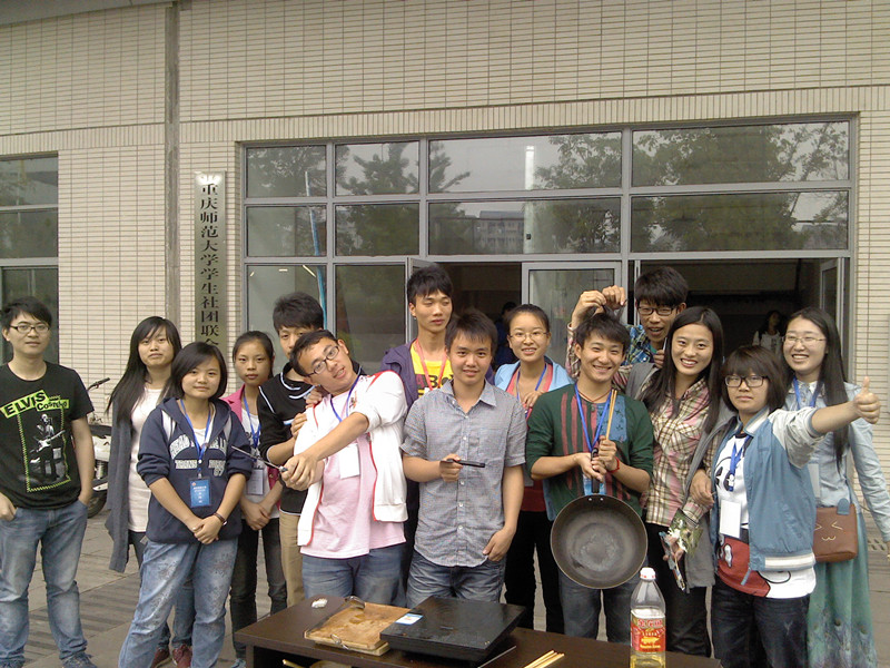 三大协会:师能素质协会、无线电协会、书画协会于2013年4月25日在重庆师范大学大学城校区足球场西三区举办了以“坚持绿色饮食,弘扬美食文化”为主题的饮食文化节活动。