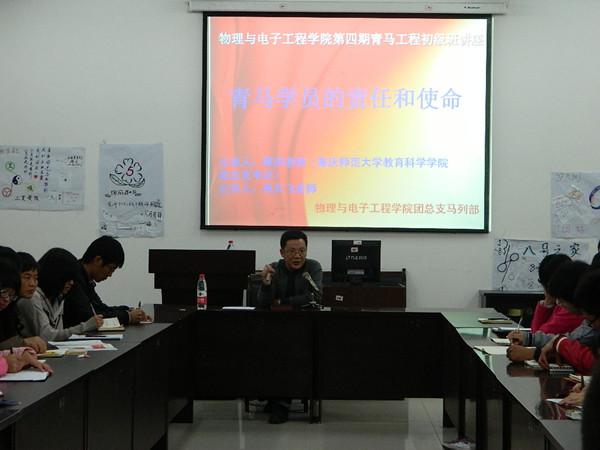 “青马工程”初级班有幸邀请到了教育科学学院党总支书记陈洪老师给青马学员做了一场“青马学员的责任和使命”的专题讲座。讲座于2012年11月18日晚上七点半在第二实验大楼501会议室举行,斗牛游戏