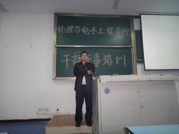 党总支副书记冉久飞老师对何东教授做了隆重的介绍,并对参加培训的同学提出嘉奖。冉久飞老师指出,任何一项微小的收获背后都有巨大的付出,当别的同学在休息、放松的时候,参加培训的同学却要坐在教室里接受培训,大家可能觉得很疲惫,但一定会有所收获,一定会在培训过程中有所感悟,这就是作为一名学生干部要比其他同学多付出和多收获的地方。接下来,何东教授就《学生干部的成才及人文素养》做了精彩的阐述。