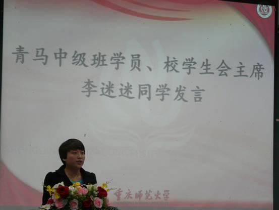 青马工程初级班的实效性。整个展示中,穿插了历社学院的朗诵,可谓锦上添花。之后,青马工程中级班学员、校学生会主席李迷迷同学发言,用切身经历告诉我们通过青马的学习,她在社交能力、思想高度、干部竞争力等方面得到很好的提升。会议的高潮,校团委熊宇老师讲话,他谈到这是我校首次青马初级班交流大会,很新颖也很有意义,也给同学们介绍了我校青马工程的主要管理层面和培养计划,让同学们有了更加明确的学习方向。同时他以学长的身份鼓励大家在大学期间加强社会实践锻炼,以后可以更好的适应社会。一场思想的交流在共青团团歌中圆满结束。会后,所有与会嘉宾合影留恋。
