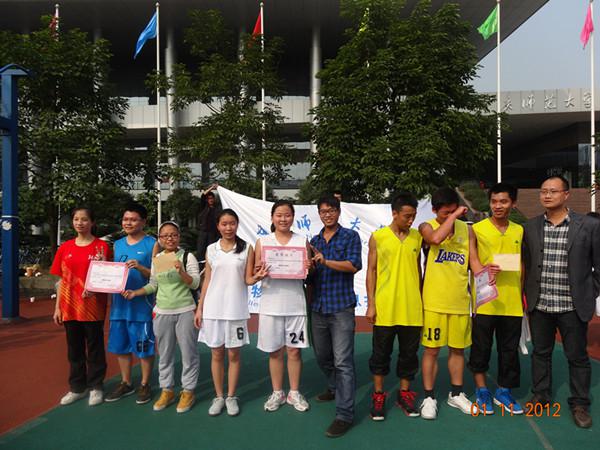 的三场篮球终极决赛在重庆师范大学篮球场打响,比赛的三个队伍分别是2010级物理二班与2010级电子信息科学与技术班男子队、2010级物理一班与2012级物理二班男子队、2011级女子队与2010级女子队,他们的激战激动了在场的所有观众。赛后,进行了颁奖典礼,参与此次颁奖典礼的嘉宾有2012级辅导员王崇明老师、2010级辅导员邓娜老师,标志着2012年斗牛扑克平台