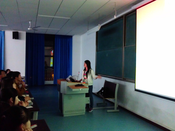 7日晚,团总支·学生会主席、书记及各部门部长早早地等待在2012级新生集中教室的外面。首先,各个团总支·学生会的成员去2012级物理系班级进行了招新宣传,学生会书记匡珏环对团总支·学生会这个整体做了一个简单的介绍,紧接着各个部长按宣传PPT上的顺序依次进入教室介绍,同学们都仔细地阅读屏幕上的部门介绍,听完介绍后,同学们发出了阵阵掌声。随后各位成员又到电子信息科学与技术普通本科班及职教班、应用班做了同样的宣传。相信这次的宣传使同学们对团总支·学生会的各部门有了一定了解,提高了大家加入学生会积极性。