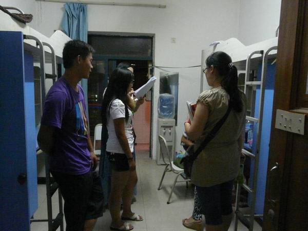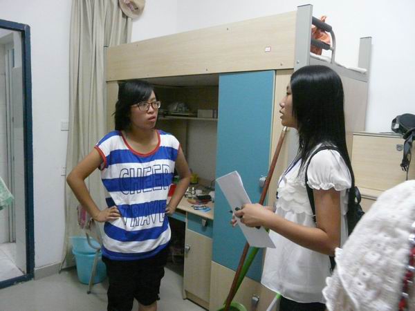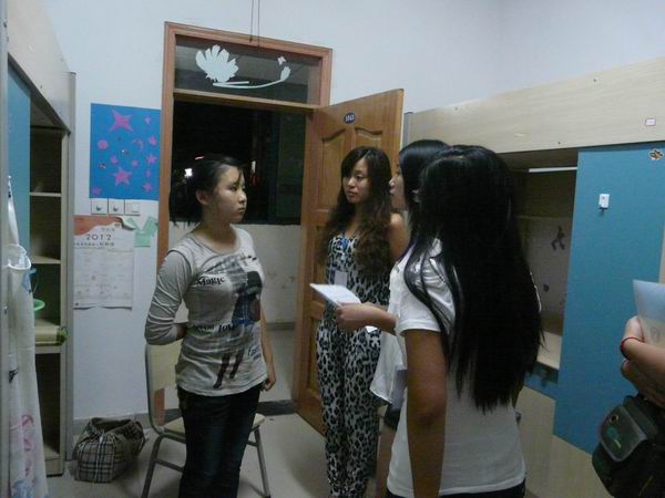 团总支学生会的12名成员在主席团的带领下,来到了2012级大一新生的宿舍对他们的住宿情况进行了了解,同时带去了斗牛扑克