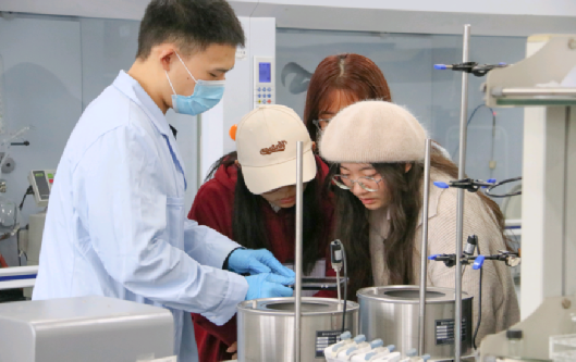 学长耐心讲解实验仪器与成品的构造及用途