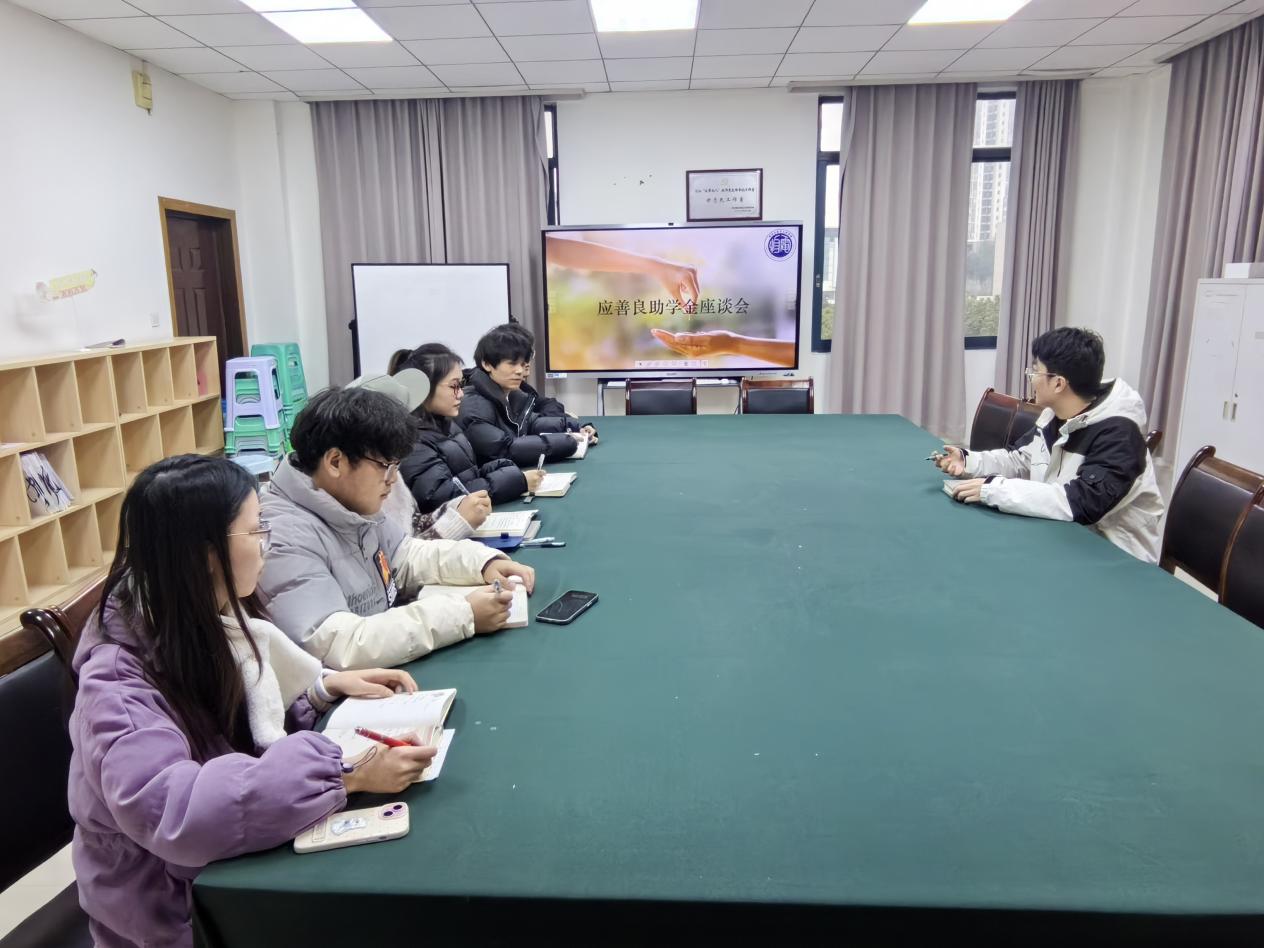 在集贤楼518召开应善良助学金受助学生座谈会。参会学生6人,此次座谈会由学院资助专员马梓茂主持