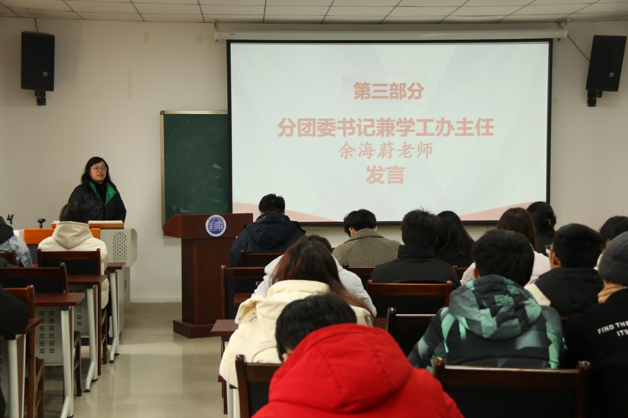 最后,学院分团委书记余海蔚老师对分团委学生会的本学期工作给予肯定,也针对不足之处提出改进的途径。
