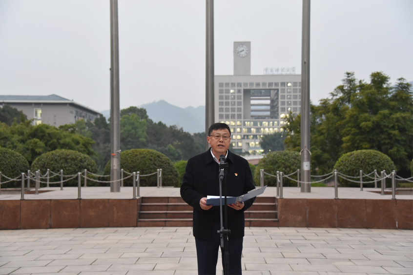 在校前广场隆重举行“国旗飘扬,青春向党”主题教育活动。学院党政领导班子成员、教职工代表、团委学生会骨干及2025级全体同学共同参与。活动由学院党委副书记曾艳主持。