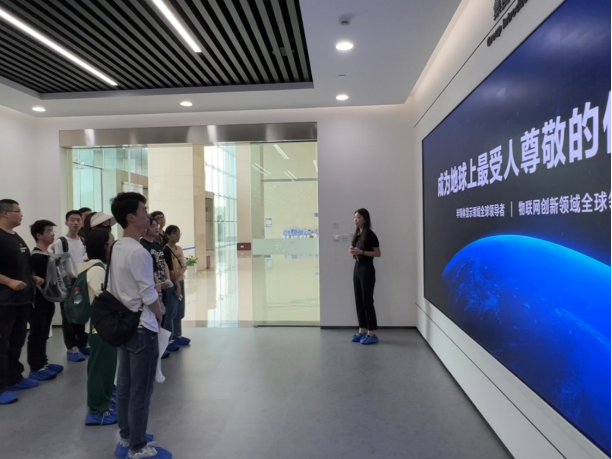 物电师生一行首先参观了企业展示大厅、应用展示区、路演区,对京东方结束我国“缺芯少屏”中的“少屏”困境有了初步了解。同学们对公司研发的手机柔性显示屏、车载显示屏、医疗显示屏以及价值不菲的超高清电视显示屏表现出浓厚兴趣,对我国电子显示科技发展情况有了更直观的认识。