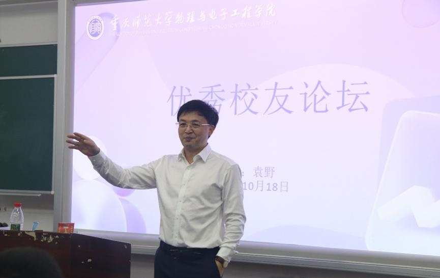 成功举办优秀校友论坛。2025年10月18日,在弘德楼15203教室,特邀学院1993级校友袁野返校给2025级电子信息科学与技术专业全体学生做讲座。讲座由学院党委书记杨云主持。