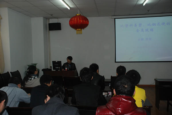 2011 年12月02日 下午4:30,斗牛游戏 研究生会邀请余鹏教授,在综合实验楼二楼会议室,为在校研究生做了题为“比塑料易塑,比钢更硬的金属玻璃”的学术讲座。