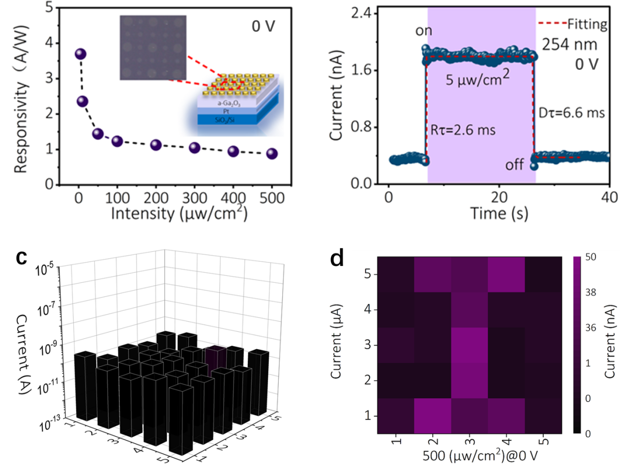 图为Pt/a-Ga2O3/ITO日盲紫外光电探测器自供电探测性能和自供电日盲紫外成像
