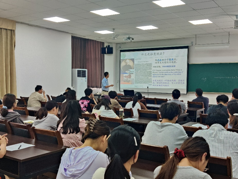 凝聚态物质科学创新团队举办的第九期学术专题研讨会,并作题为“现代分析测试技术-拉曼光谱技术与应用“的专题报告。相关研究方向的老师、研究生及本科生参与。研讨会由物理学系主任李万俊主持。