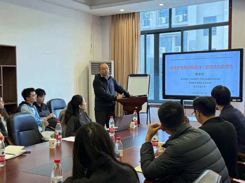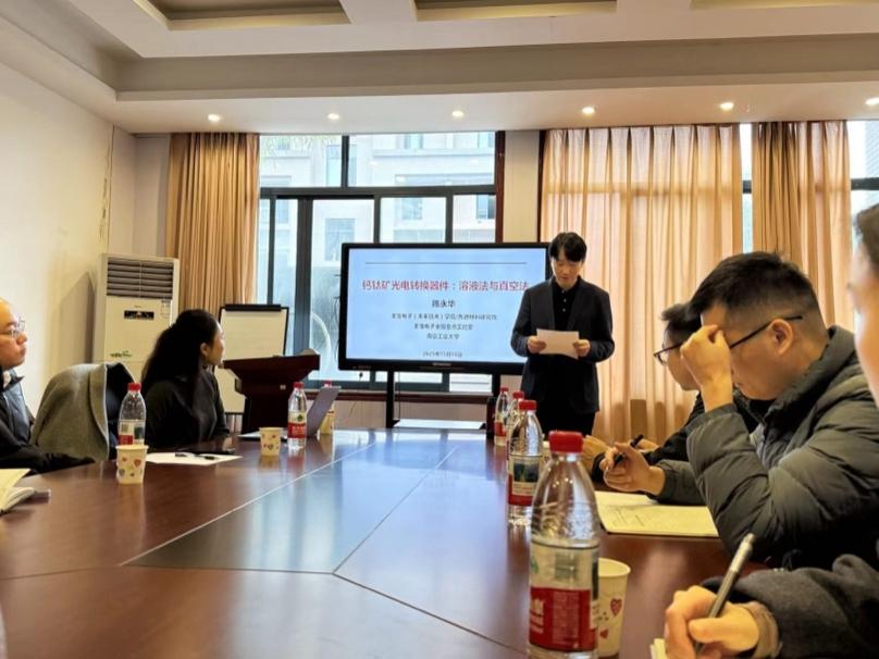 开展学术交流,作题为《钙钛矿光电转换器件:溶液法与真空法》的学术报告。物电学院相关方向老师及研究生参加了此次学术报告会,报告会由物电学院院长余鹏教授主持。