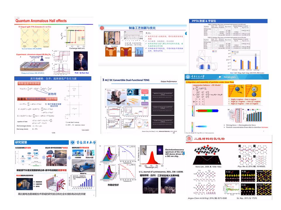 位专家学者作了大会报告。专家学者们分享了自己最新的创新研究成果,从纯物理到应用物理,从理论到实验和应用,报告内容广泛,涉及到:重味物理、粒子宇宙学、量子反常霍尔效应、高阶拓扑物态、多功能发光材料、非晶态复合材料、摩擦纳米发电机、多相聚合物体系界面、高性能锂氧电池等。