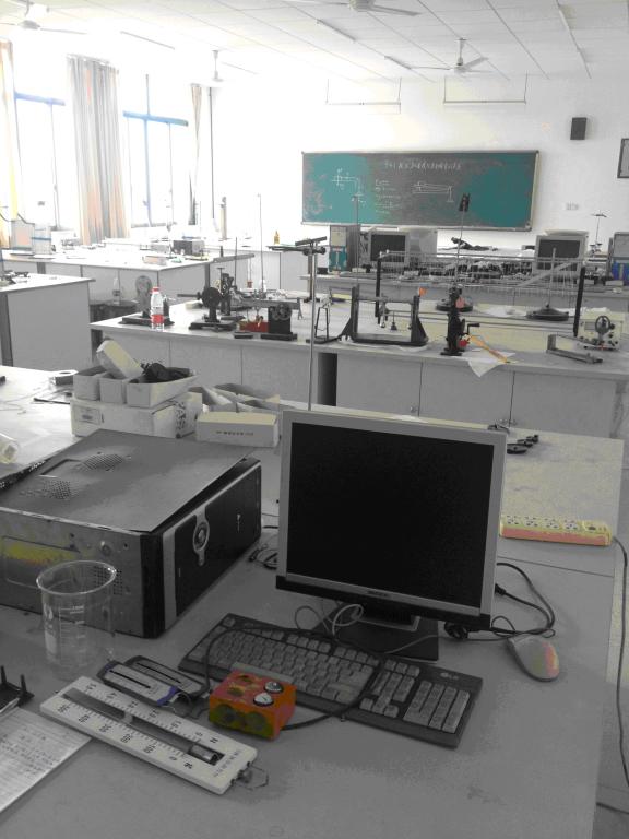 中学物理教学法实验室,使用面积150m2,主要仪器有:PASCO实验系统、电磁打点计时器、力传感器、电荷传感器、静电学教学箱、1.2m经典动力学导轨、二维磁场演示器、法拉第笼等。承担物理学(师范)专业物理课程与教学论实验教学,同时向全校学生开放。