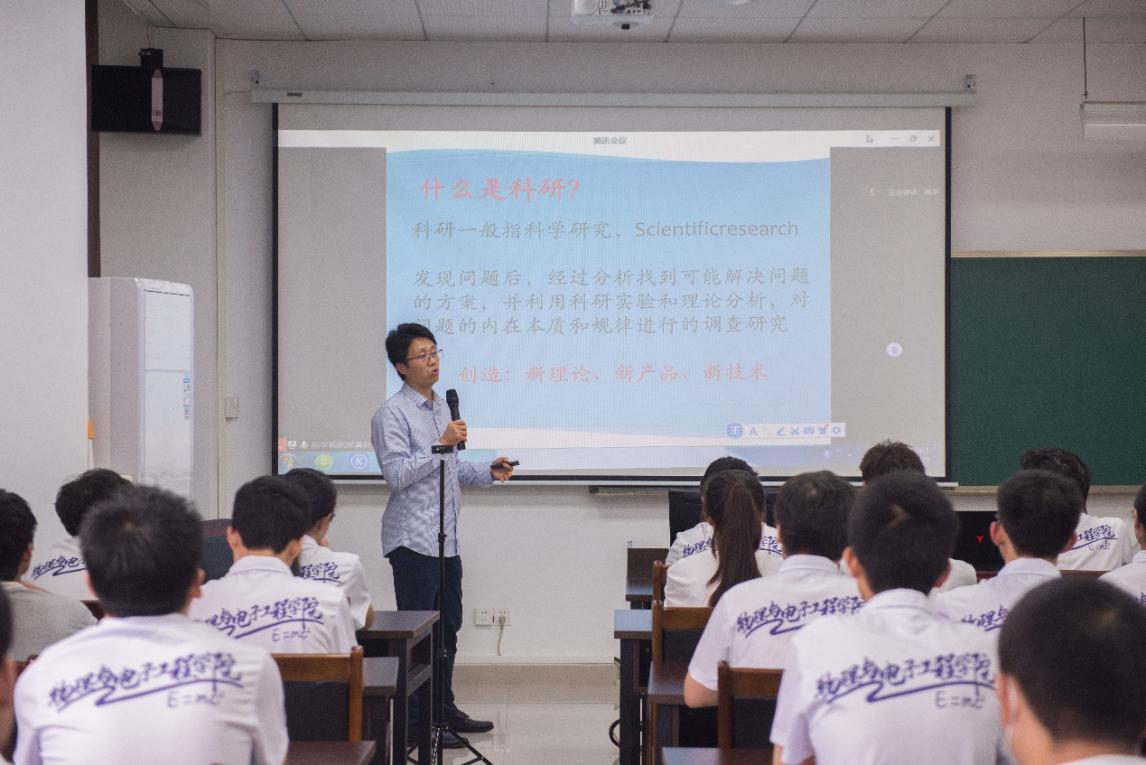 科普活动伊始,余鹏副院长为本次科普活动致辞,他介绍了实验室的历史发展和现状,欢迎青年学子踊跃加入实验室,启发科学研究兴趣,同时鼓励青年学子积极投身科学研究,在建设世界科技强国征程中勇毅前行!