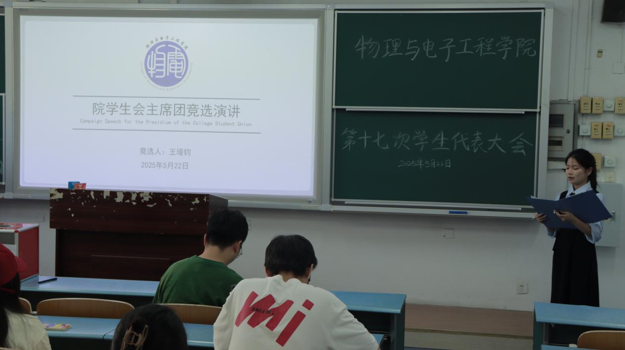 在弘德楼召开第十七次学生代表大会暨2025-2026学年分团委·学生会主席团候选人竞选大会。本次竞选共有4名候选人,全院各年级、各专业70名学生代表参会,辅导员马梓茂老师作为嘉宾出席。